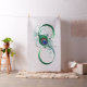 The symbol of infinity with a bright, green, artistic peacock feather on a white background. Tattoo style.