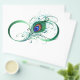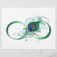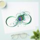 The symbol of infinity with a bright, green, artistic peacock feather on a white background. Tattoo style.