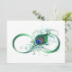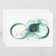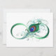 The symbol of infinity with a bright, green, artistic peacock feather on a white background. Tattoo style.