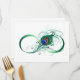 The symbol of infinity with a bright, green, artistic peacock feather on a white background. Tattoo style.