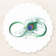 The symbol of infinity with a bright, green, artistic peacock feather on a white background. Tattoo style.