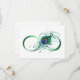 The symbol of infinity with a bright, green, artistic peacock feather on a white background. Tattoo style.