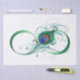 The symbol of infinity with a bright, green, artistic peacock feather on a white background. Tattoo style.