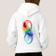 Artistically drawn infinity symbol with beautiful rainbow feather on white background. Tattoo style.
