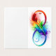 Artistically drawn infinity symbol with beautiful rainbow feather on white background. Tattoo style.