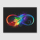 Artistically drawn infinity symbol with beautiful rainbow feather on white background. Tattoo style.