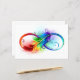 Artistically drawn infinity symbol with beautiful rainbow feather on white background. Tattoo style.