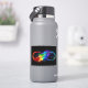 Artistically drawn infinity symbol with beautiful rainbow feather on white background. Tattoo style.