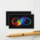 Artistically drawn infinity symbol with beautiful rainbow feather on white background. Tattoo style.