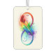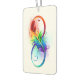 Artistically drawn infinity symbol with beautiful rainbow feather on white background. Tattoo style.