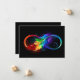 Artistically drawn infinity symbol with beautiful rainbow feather on white background. Tattoo style.