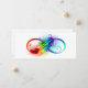 Artistically drawn infinity symbol with beautiful rainbow feather on white background. Tattoo style.