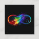 Artistically drawn infinity symbol with beautiful rainbow feather on white background. Tattoo style.