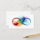 Artistically drawn infinity symbol with beautiful rainbow feather on white background. Tattoo style.