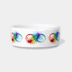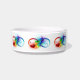 This is a heavy, durable bowl decorated with Tibbies of many colors, the perfect size for hungry/thirsty Tibs. The design is interesting and printing clear.
