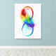 Artistically drawn infinity symbol with beautiful rainbow feather on white background. Tattoo style.