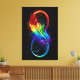 Artistically drawn infinity symbol with beautiful rainbow feather on white background. Tattoo style.