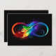 Artistically drawn infinity symbol with beautiful rainbow feather on white background. Tattoo style.