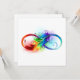 Artistically drawn infinity symbol with beautiful rainbow feather on white background. Tattoo style.