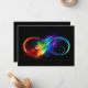 Artistically drawn infinity symbol with beautiful rainbow feather on white background. Tattoo style.