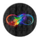 Artistically drawn infinity symbol with beautiful rainbow feather on white background. Tattoo style.