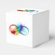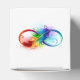 Artistically drawn infinity symbol with beautiful rainbow feather on white background. Tattoo style.