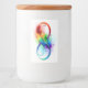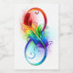Artistically drawn infinity symbol with beautiful rainbow feather on white background. Tattoo style.