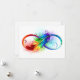 Artistically drawn infinity symbol with beautiful rainbow feather on white background. Tattoo style.