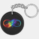 Artistically drawn infinity symbol with beautiful rainbow feather on white background. Tattoo style.