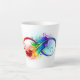 Artistically drawn infinity symbol with beautiful rainbow feather on white background. Tattoo style.