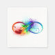 Artistically drawn infinity symbol with beautiful rainbow feather on white background. Tattoo style.