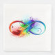 Artistically drawn infinity symbol with beautiful rainbow feather on white background. Tattoo style.