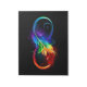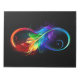 Artistically drawn infinity symbol with beautiful rainbow feather on white background. Tattoo style.