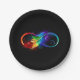 Artistically drawn infinity symbol with beautiful rainbow feather on white background. Tattoo style.