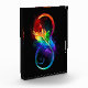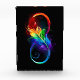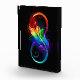 Artistically drawn infinity symbol with beautiful rainbow feather on white background. Tattoo style.