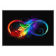 Artistically drawn infinity symbol with beautiful rainbow feather on white background. Tattoo style.