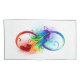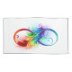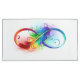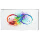 Artistically drawn infinity symbol with beautiful rainbow feather on white background. Tattoo style.
