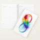 Artistically drawn infinity symbol with beautiful rainbow feather on white background. Tattoo style.