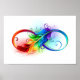 Artistically drawn infinity symbol with beautiful rainbow feather on white background. Tattoo style.