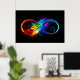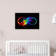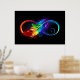 Artistically drawn infinity symbol with beautiful rainbow feather on white background. Tattoo style.