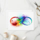 Artistically drawn infinity symbol with beautiful rainbow feather on white background. Tattoo style.