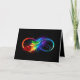 Artistically drawn infinity symbol with beautiful rainbow feather on white background. Tattoo style.