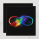 Artistically drawn infinity symbol with beautiful rainbow feather on white background. Tattoo style.