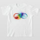 Artistically drawn infinity symbol with beautiful rainbow feather on white background. Tattoo style.