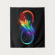 Artistically drawn infinity symbol with beautiful rainbow feather on white background. Tattoo style.