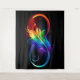 Artistically drawn infinity symbol with beautiful rainbow feather on white background. Tattoo style.