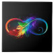 Artistically drawn infinity symbol with beautiful rainbow feather on white background. Tattoo style.