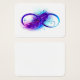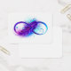 Infinity symbol with a beautiful feather painted in purple and blue bright colours on white background.