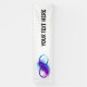 Infinity symbol with a beautiful feather painted in purple and blue bright colours on white background.