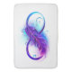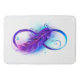 Infinity symbol with a beautiful feather painted in purple and blue bright colours on white background.